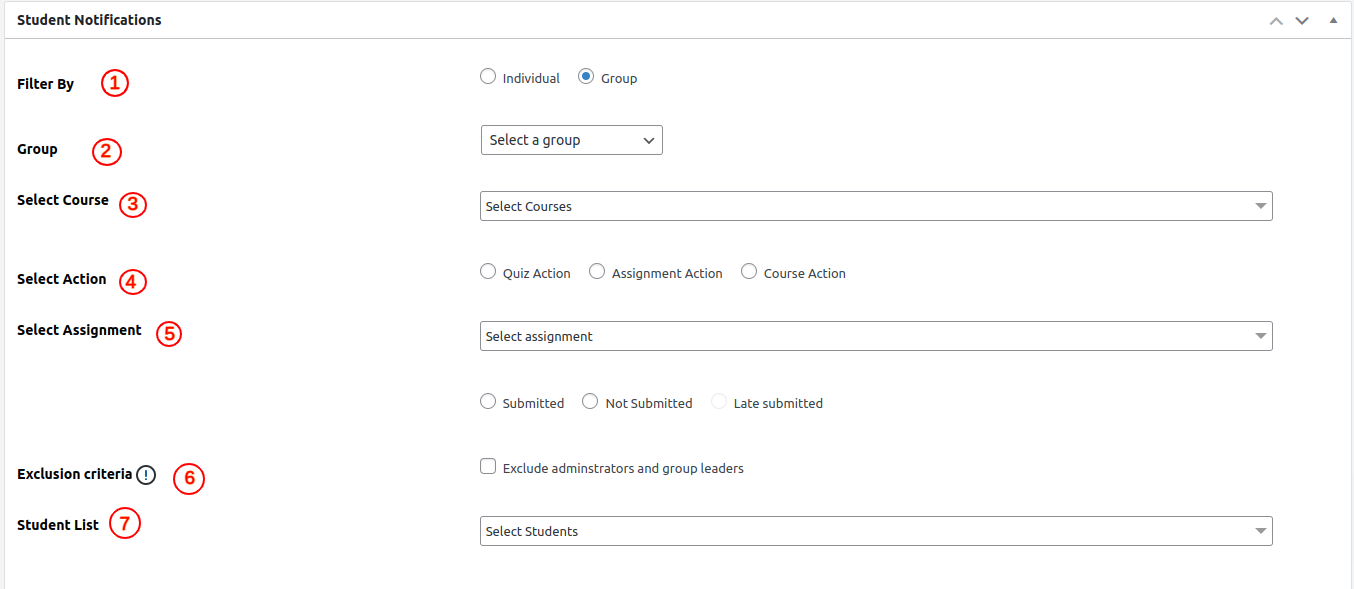 - Filter By Group and Individual: This field helps to choose between filtering students belonging to a specific group or retrieving all students, including independent learners.