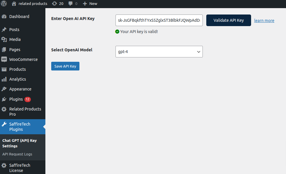After installing the Related Products Pro for WooCommerce plugin, follow these steps to validate your OpenAI API key: