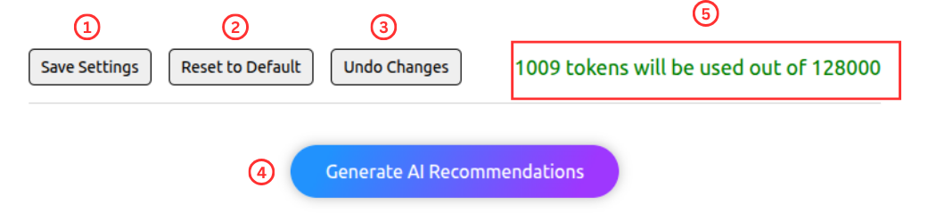 - Save Settings: Saves all current configurations without sending a recommendation request to the AI. This action only stores your settings.